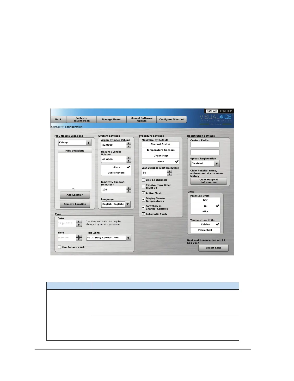 The Congure Settings Screen allows selection of settings used during a cryoablation procedure.