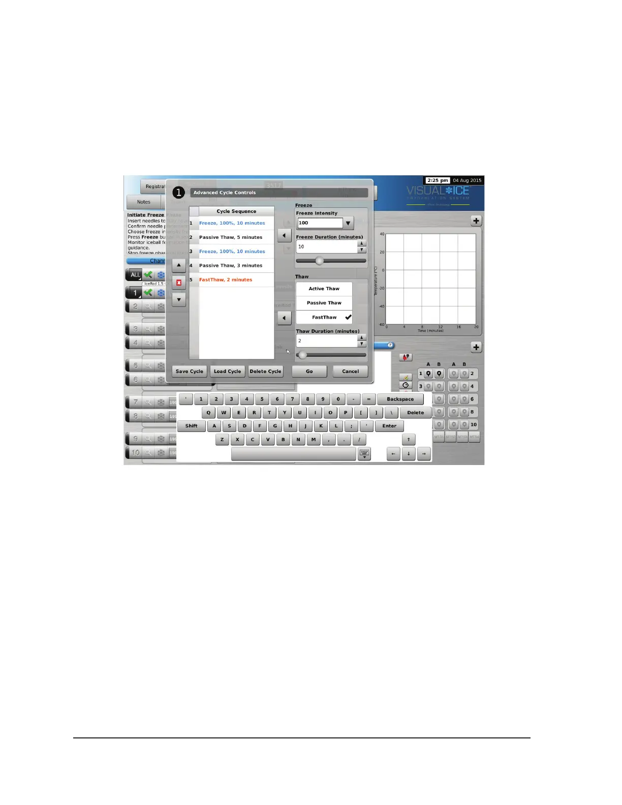 10. Press the Go button to initiate the cryoablation procedure with the programmed cycles.