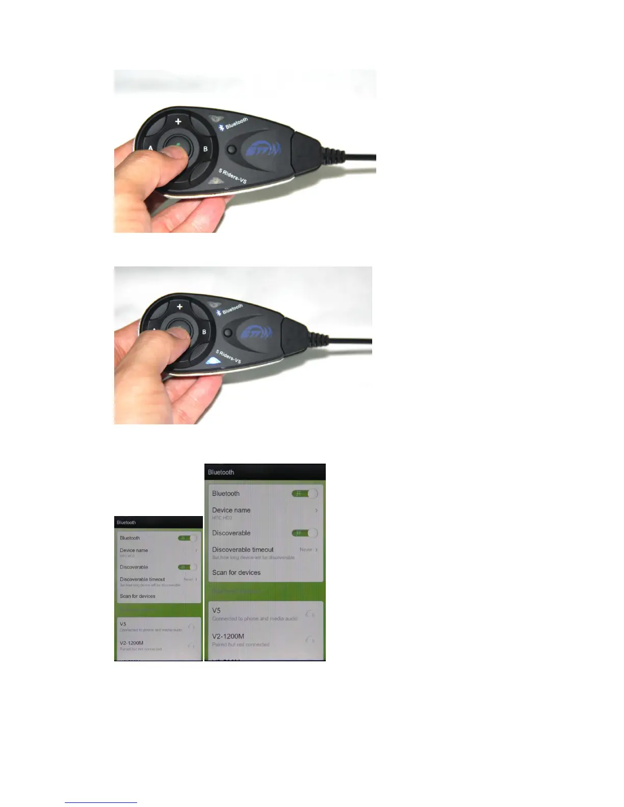2: Pairing with cellphone/MP3/GPS,after power on,press key 1 about 3-5 seconds, with red and