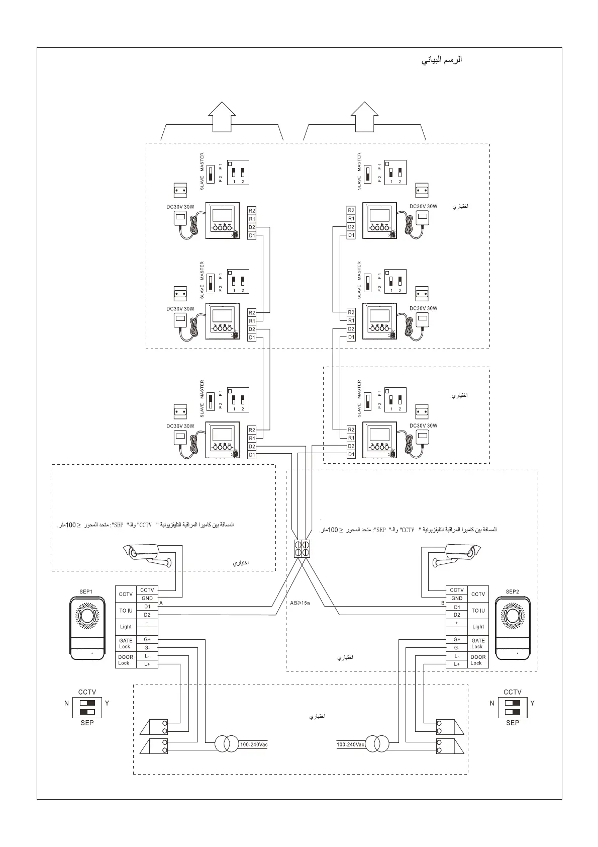 Distance between CCTV camera and SEP : coaxial ≤100m