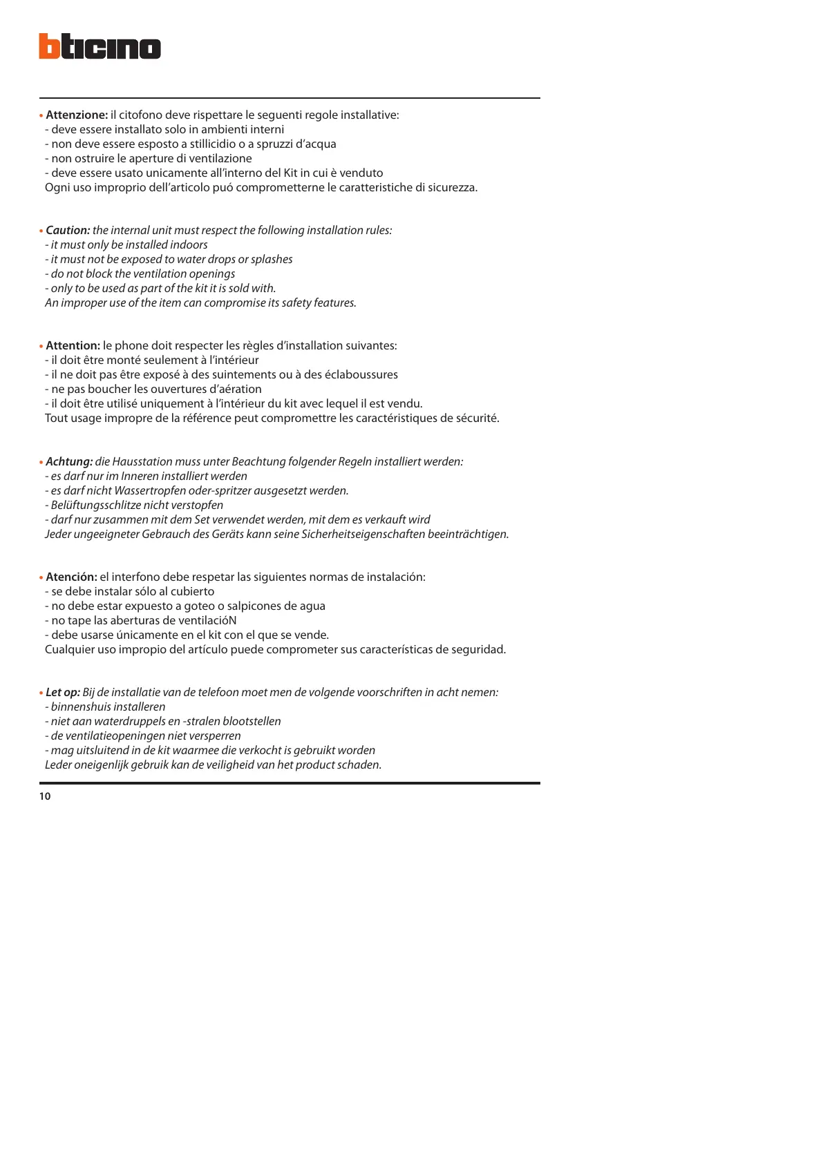 • Attenzione: il citofono deve rispettare le seguenti regole installative: