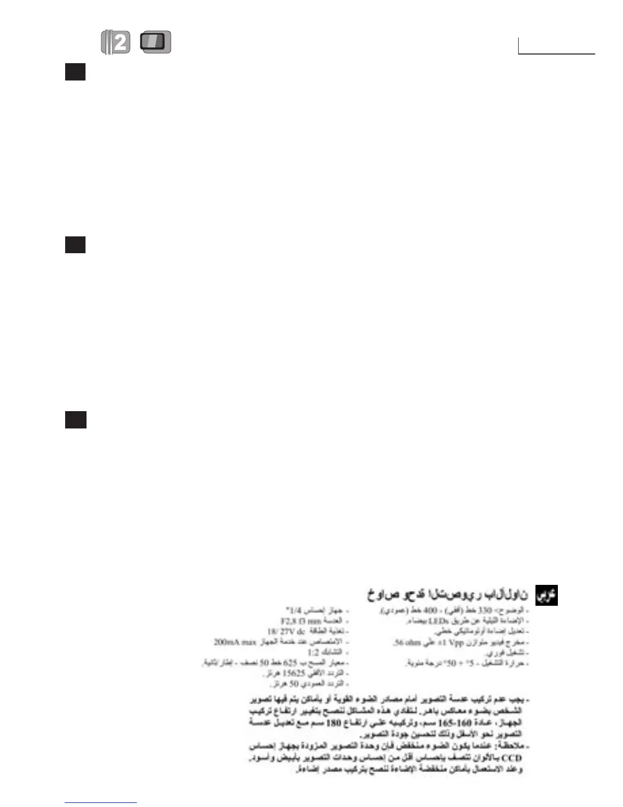- Kamera telewizyjna nie mo˝e byç zainstalowana naprzeciw silnego êród∏a Êwiat∏a, lub w miejscach, gdzie