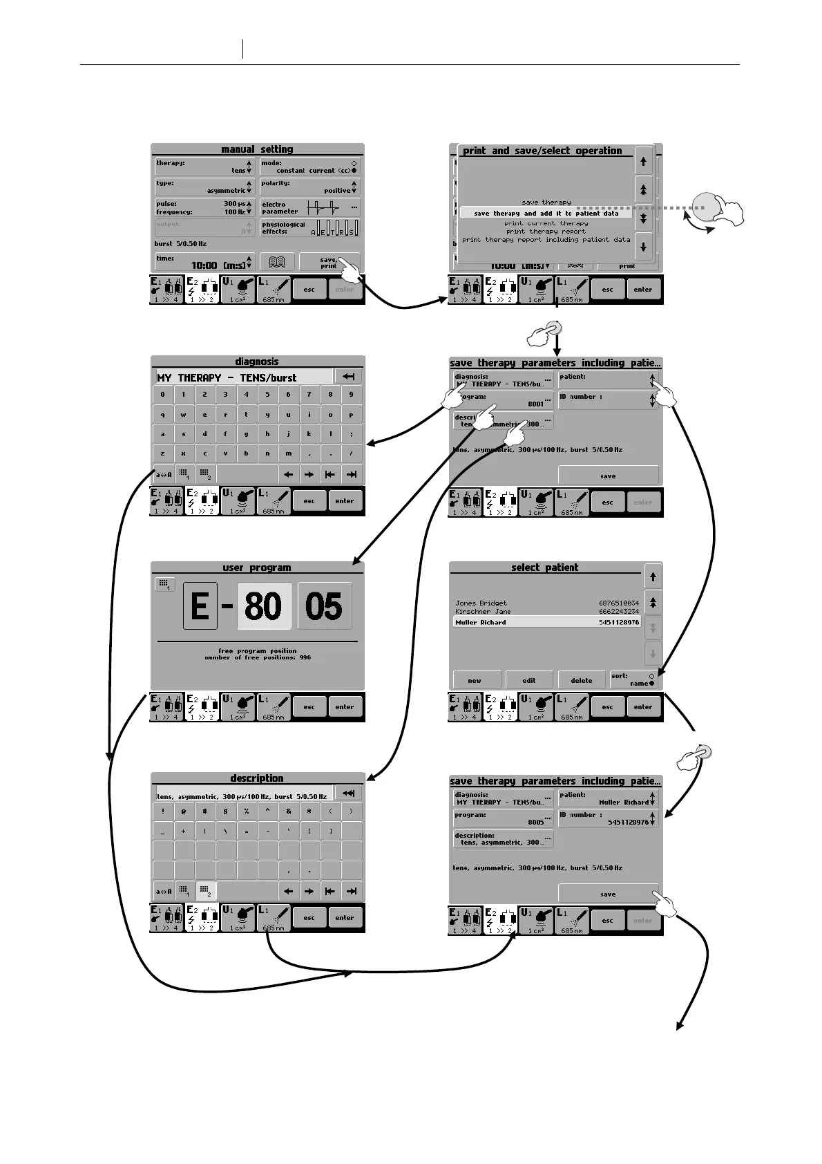 Set therapy parameters Save therapy