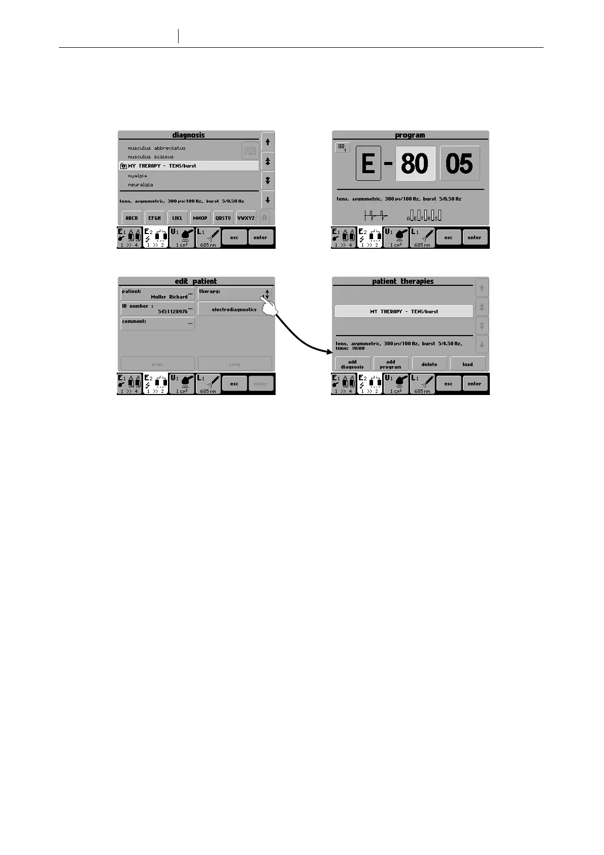 A saved therapy will be visible in the:
