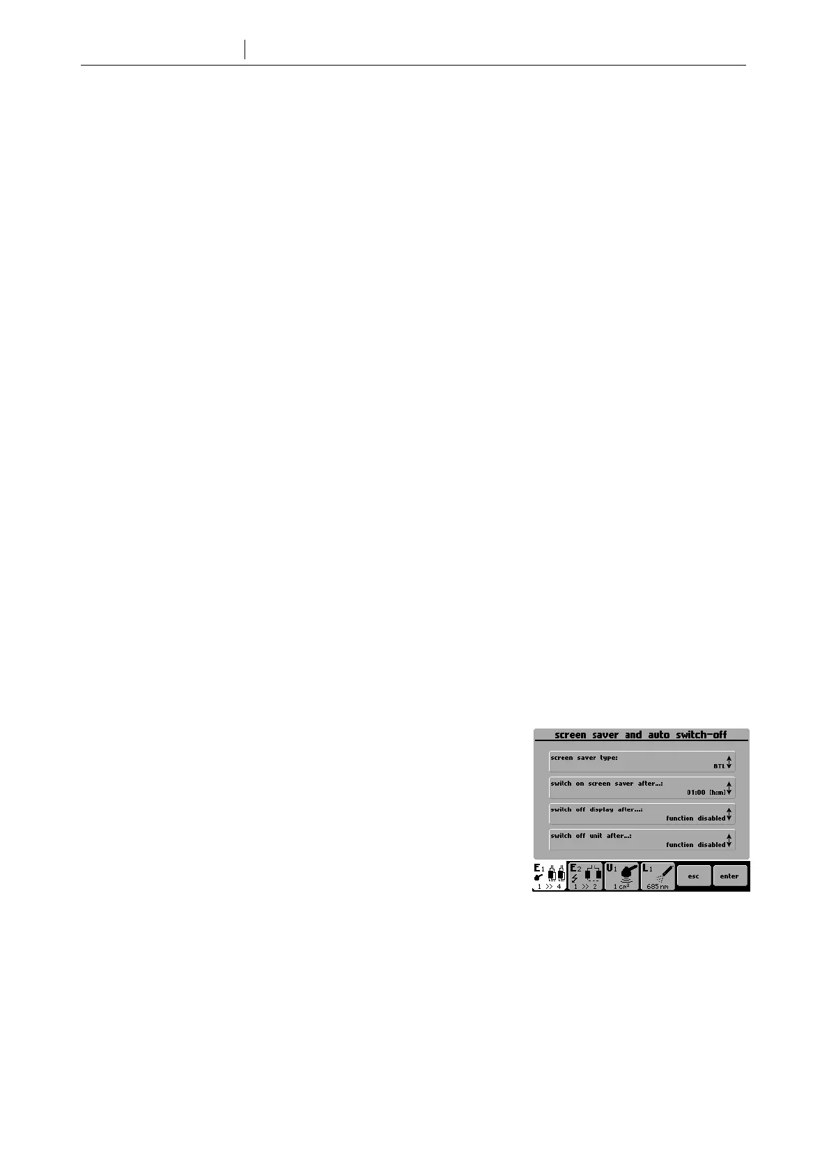 screen saver. Sets auto power off feature for switch-off of the LCD screen