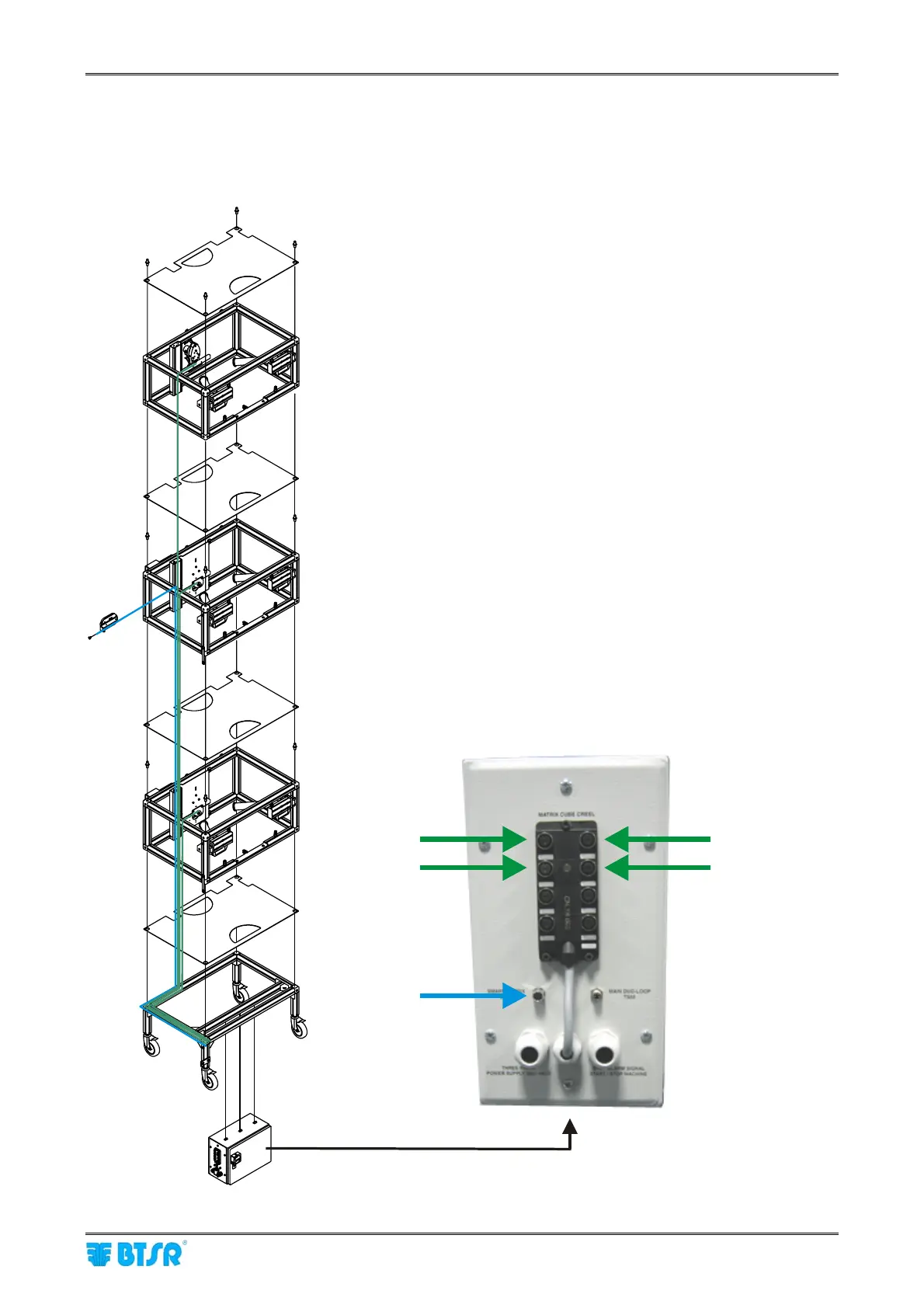 Lead the DIAPER FEEDER interface cable (shown with green lines) and of SMART MATRIX CUBE terminal