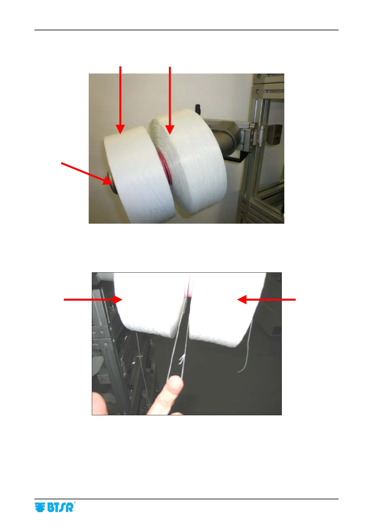 5) Load spools 3 and 4 on spool holder (B)