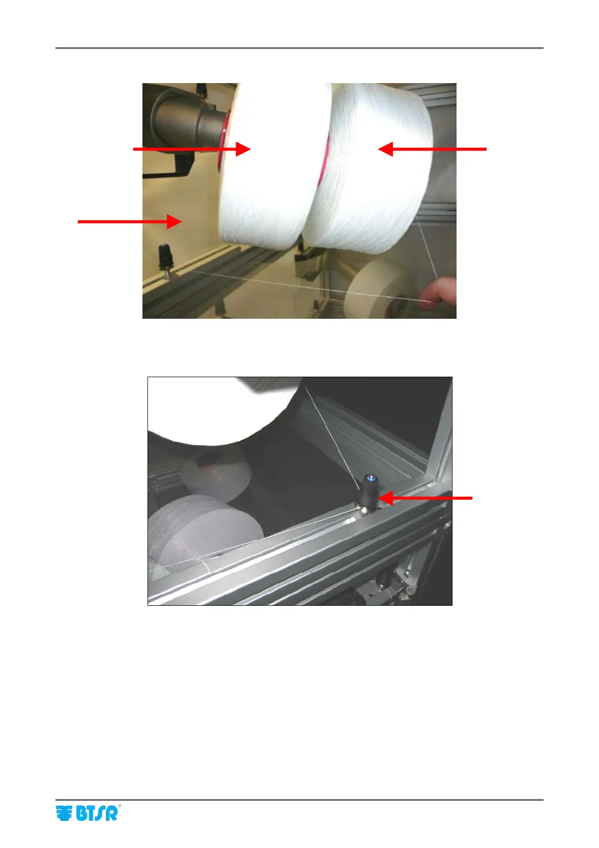7) Thread the head of spool 1 on yarn braking device (F2)