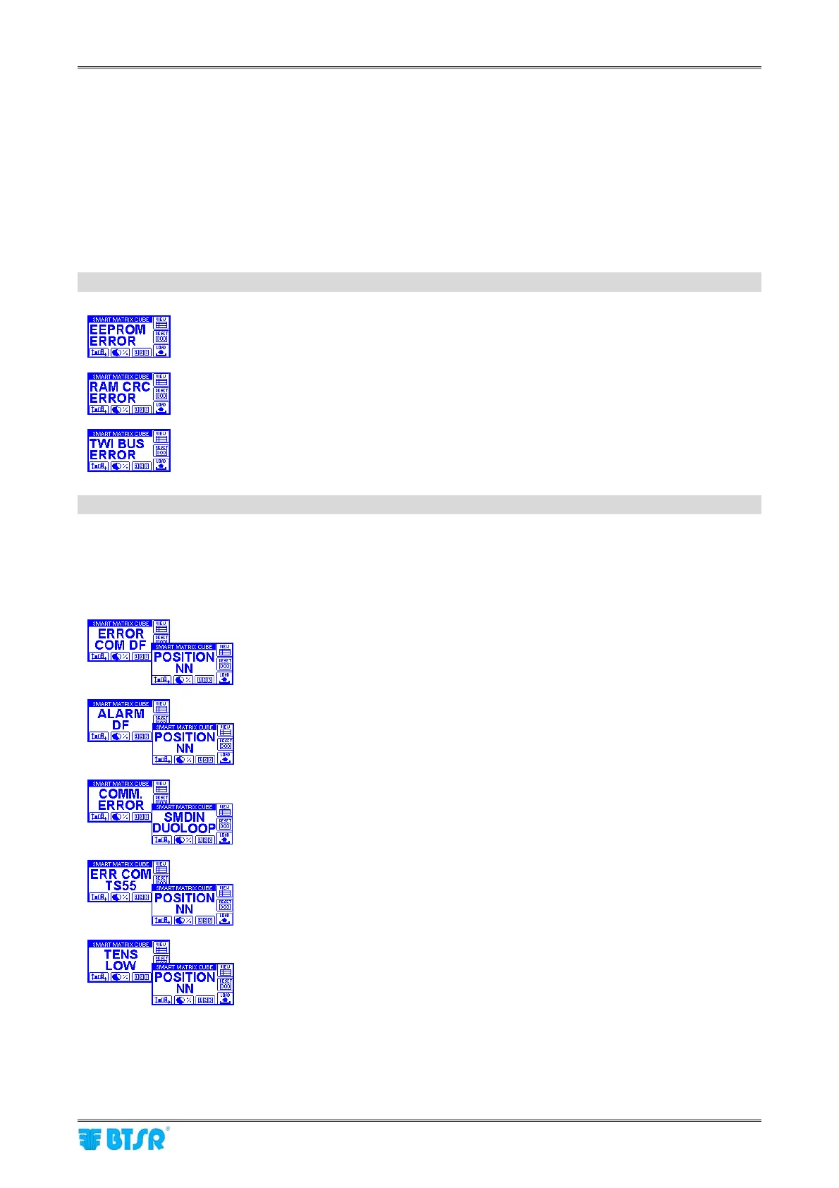 More precisely, two error screens will be shown alternatively containing the error detail (e.g. ERROR COM