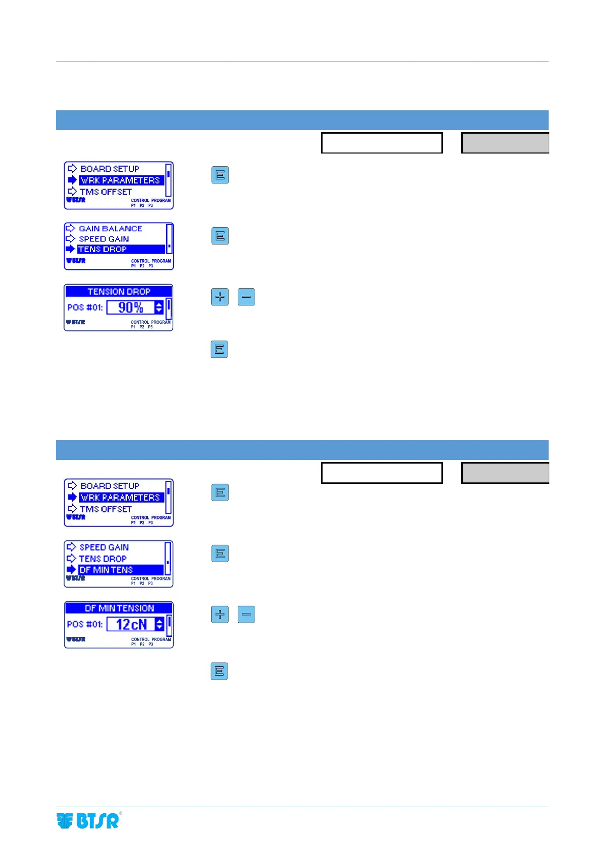3 sec to confirm and go back to WRK PARAMETERS menu
