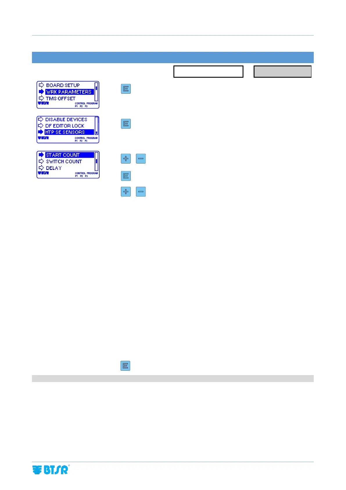 3 sec to confirm and go back to WRK PARAMETERS menu