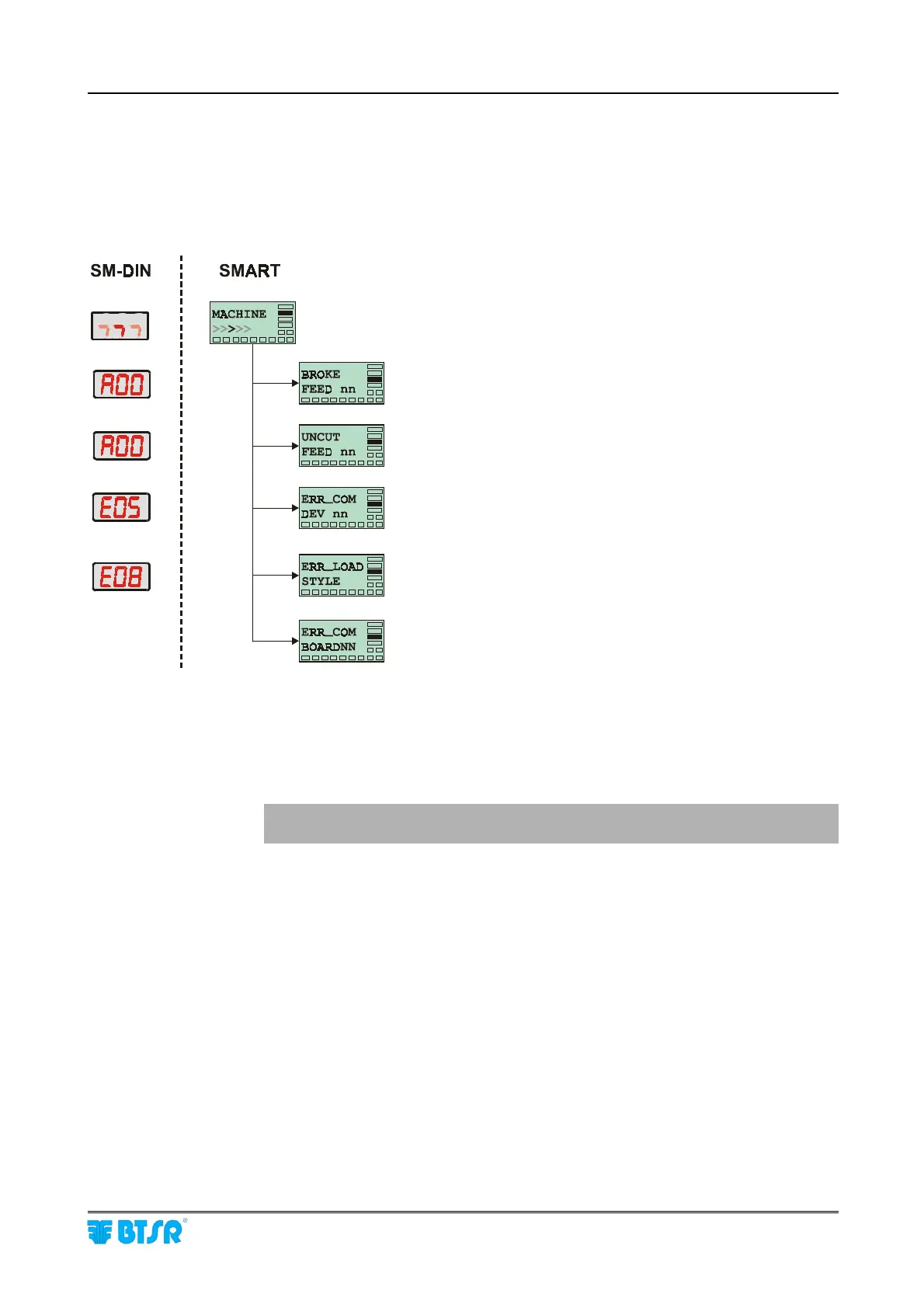 the display of SM-DIN modules may show various failure signaling messages.