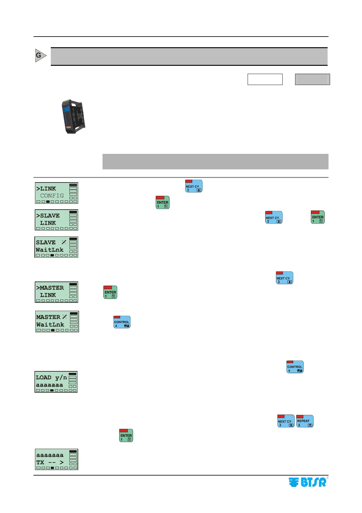 On the Slave terminal select the >SLAVE LINK item using