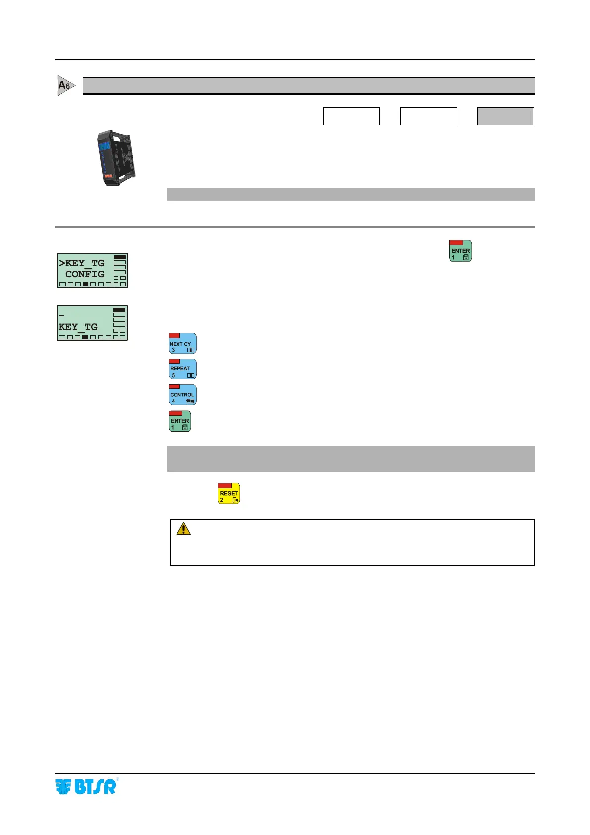 Once you have selected the > KEY_TG CONFIG screen, press