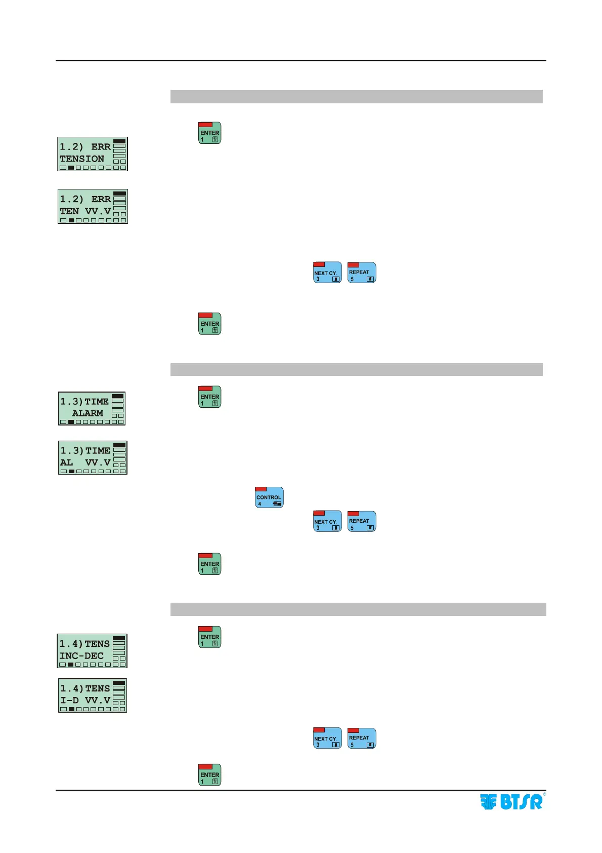 VV.V = Value of parameter P1.4 INC-DEC TENSION parameter to be