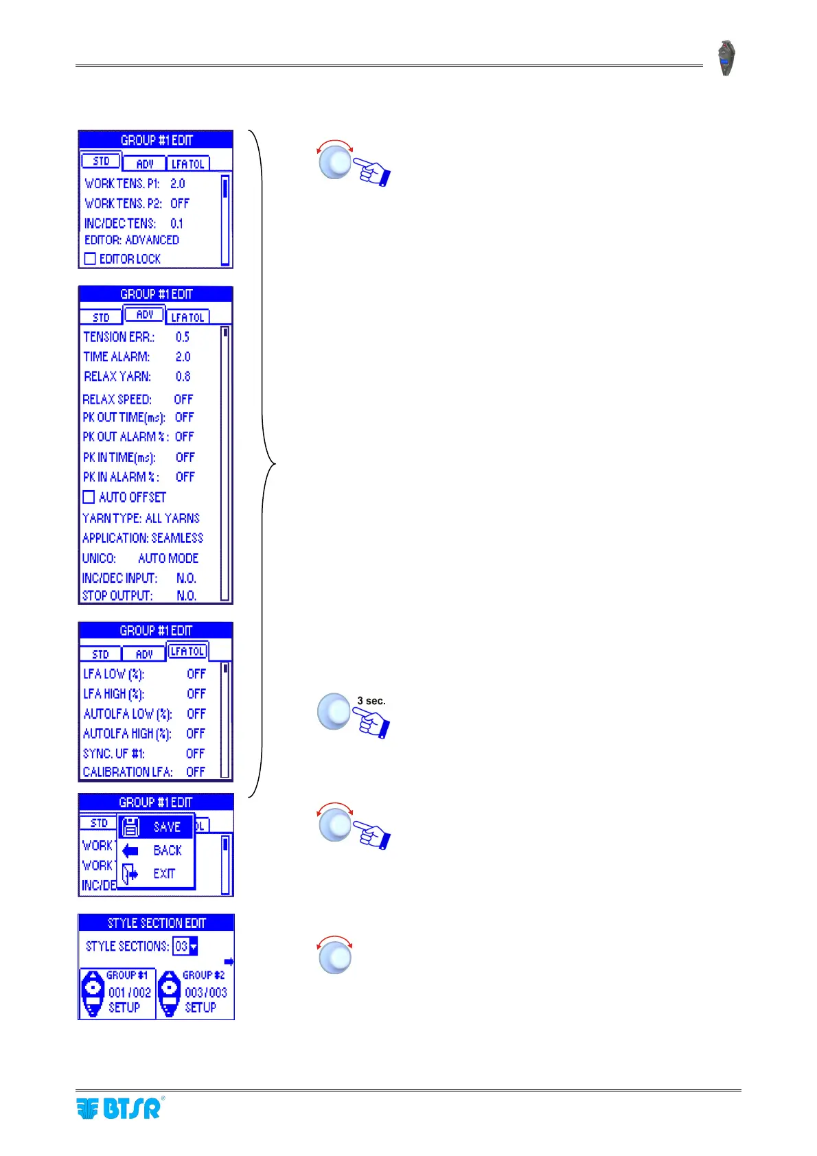 SAVE to save the set parameter and return to the STYLE
