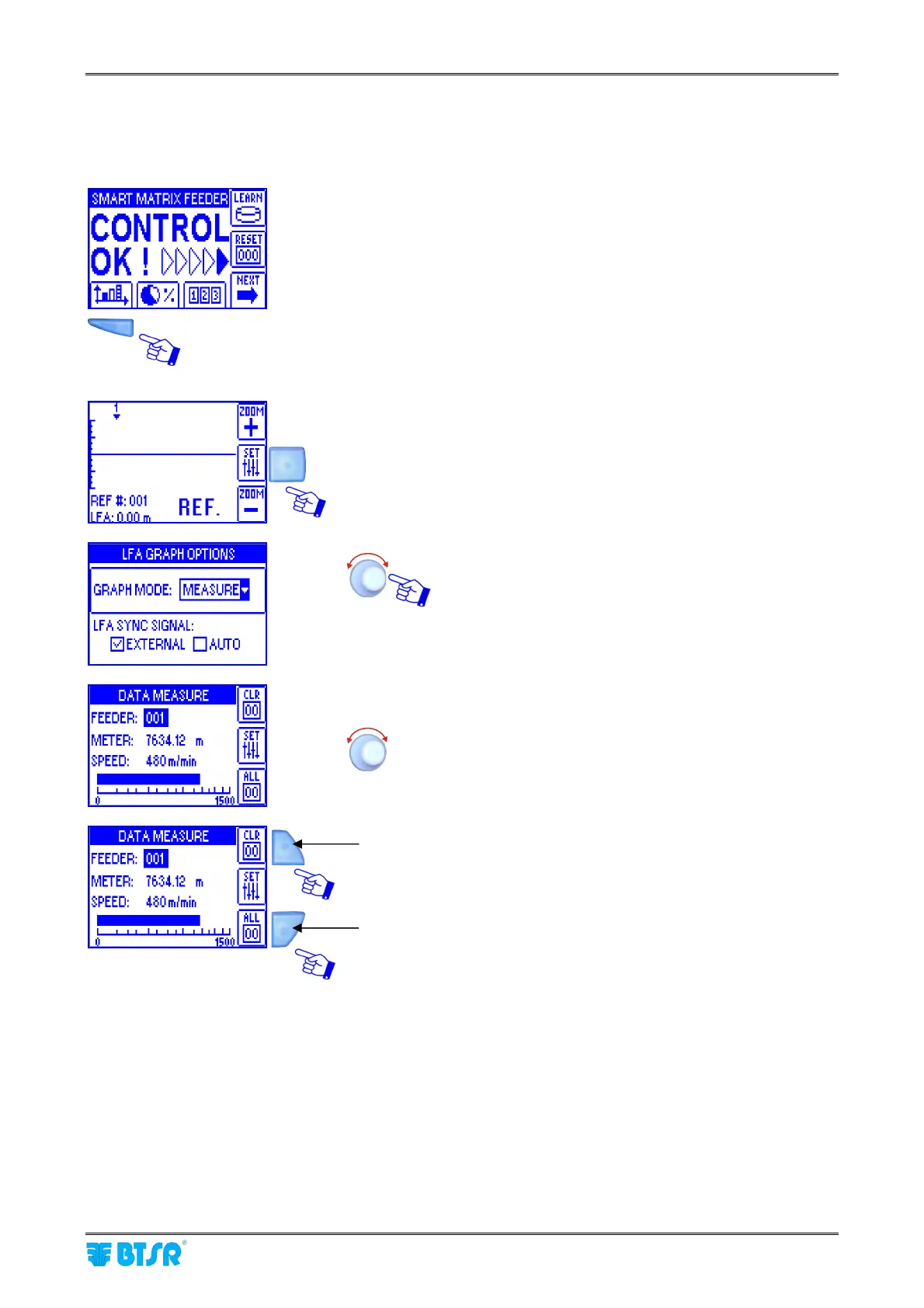 This function allows you to view in real time (for each device) the amount of absorbed yarn – LFA – and the