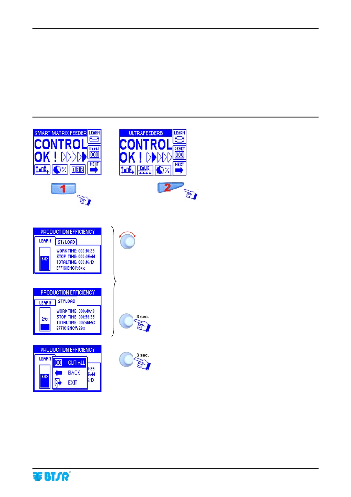 This function allows you to display the production efficiency values (work time, stop time, total time and