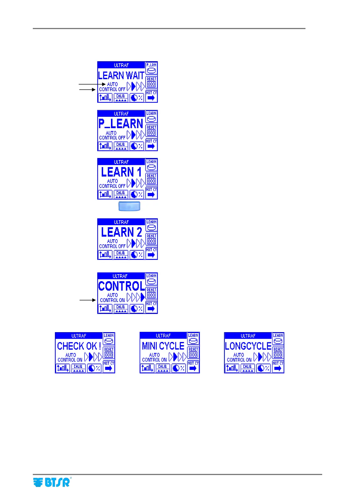 After ten consecutive “MINI CYCLE” or “LONGCYCLE” messages, a warning LEARN MISS ??? will appear