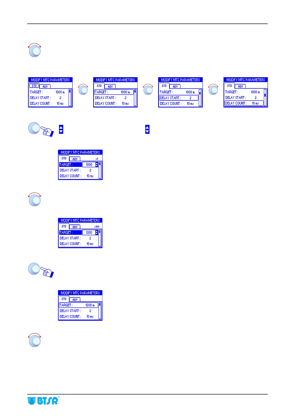 (STD → TARGET → DELAY START → DELAY COUNT→ SENSITIVITY→ DELAY STOP