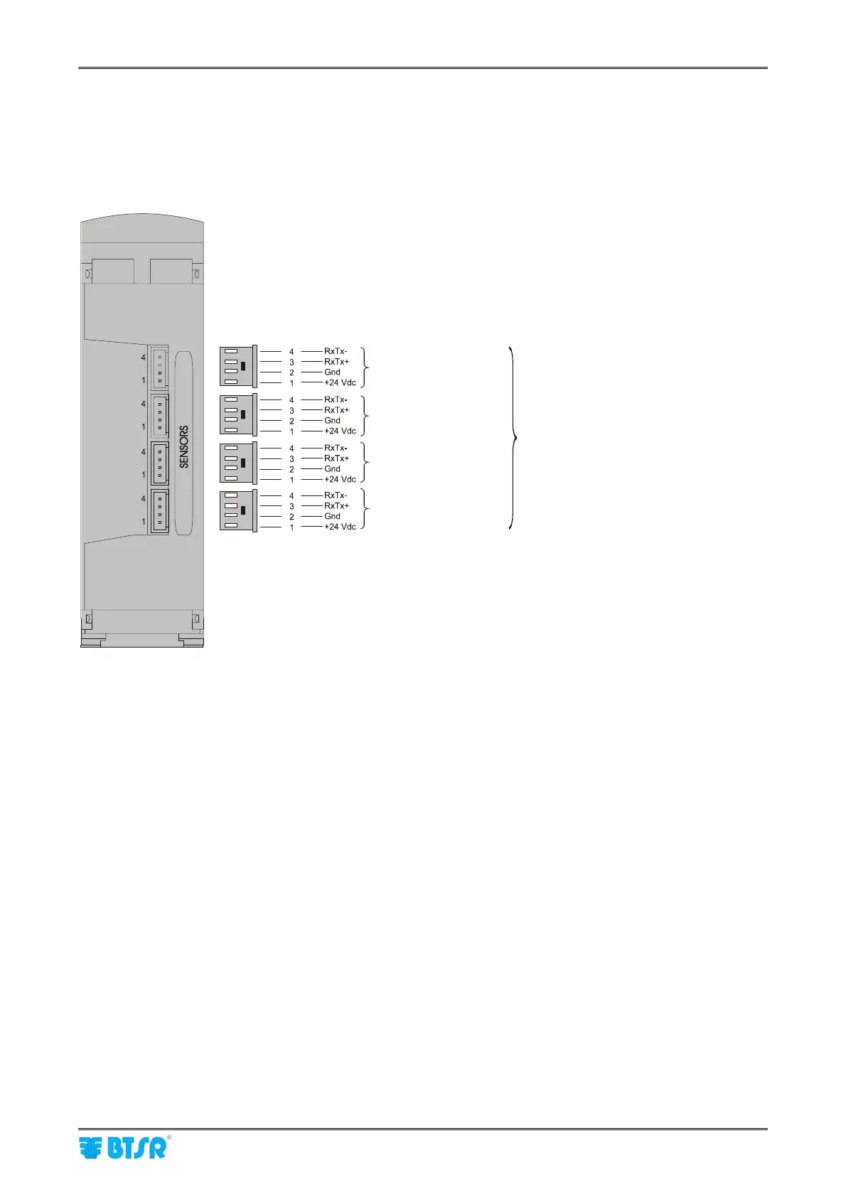 As you may note, 4 identical connectors are available, allowing you to connect up to 4 sensors and/or