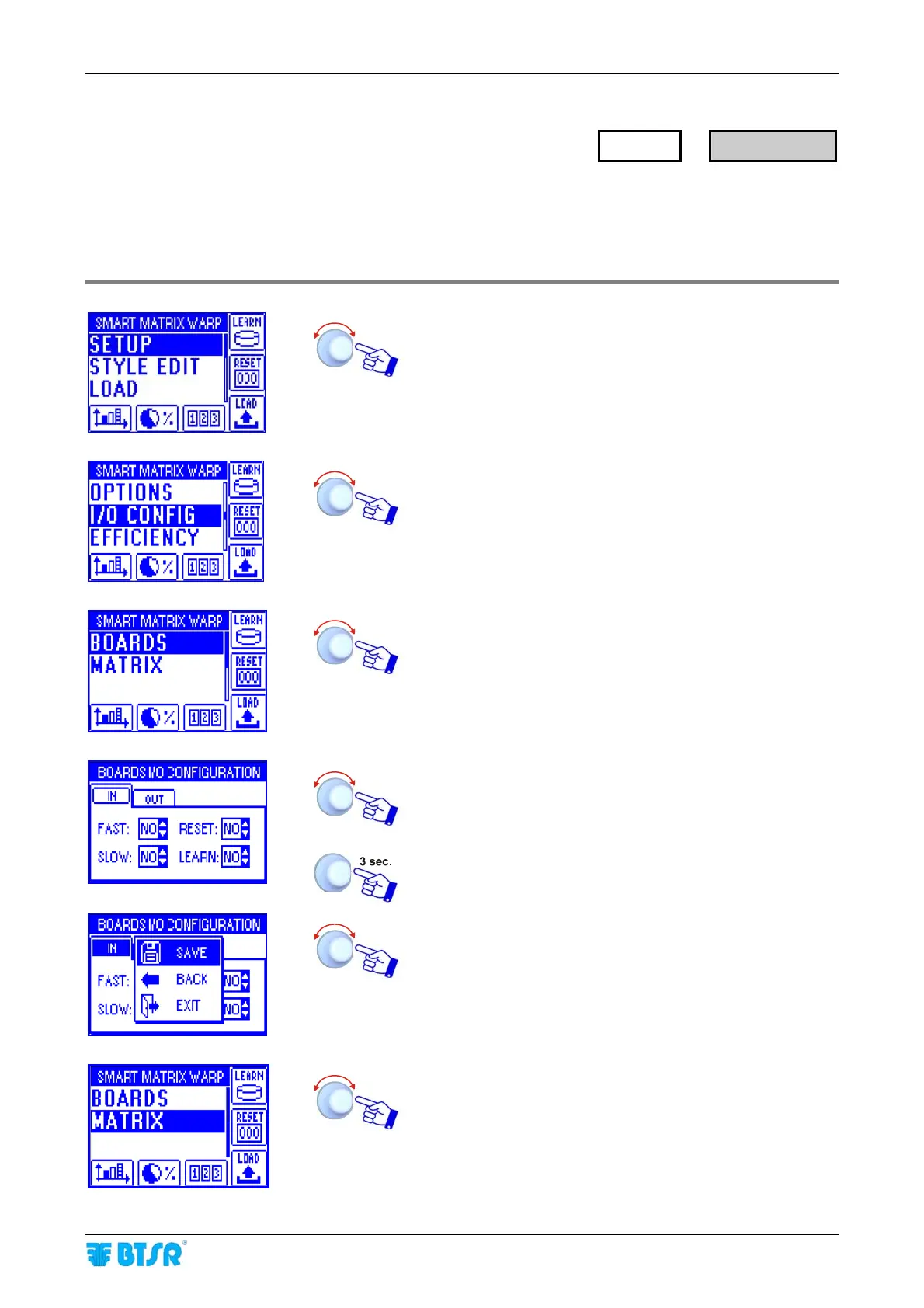 SAVE to save the choice, BACK to return to the previous