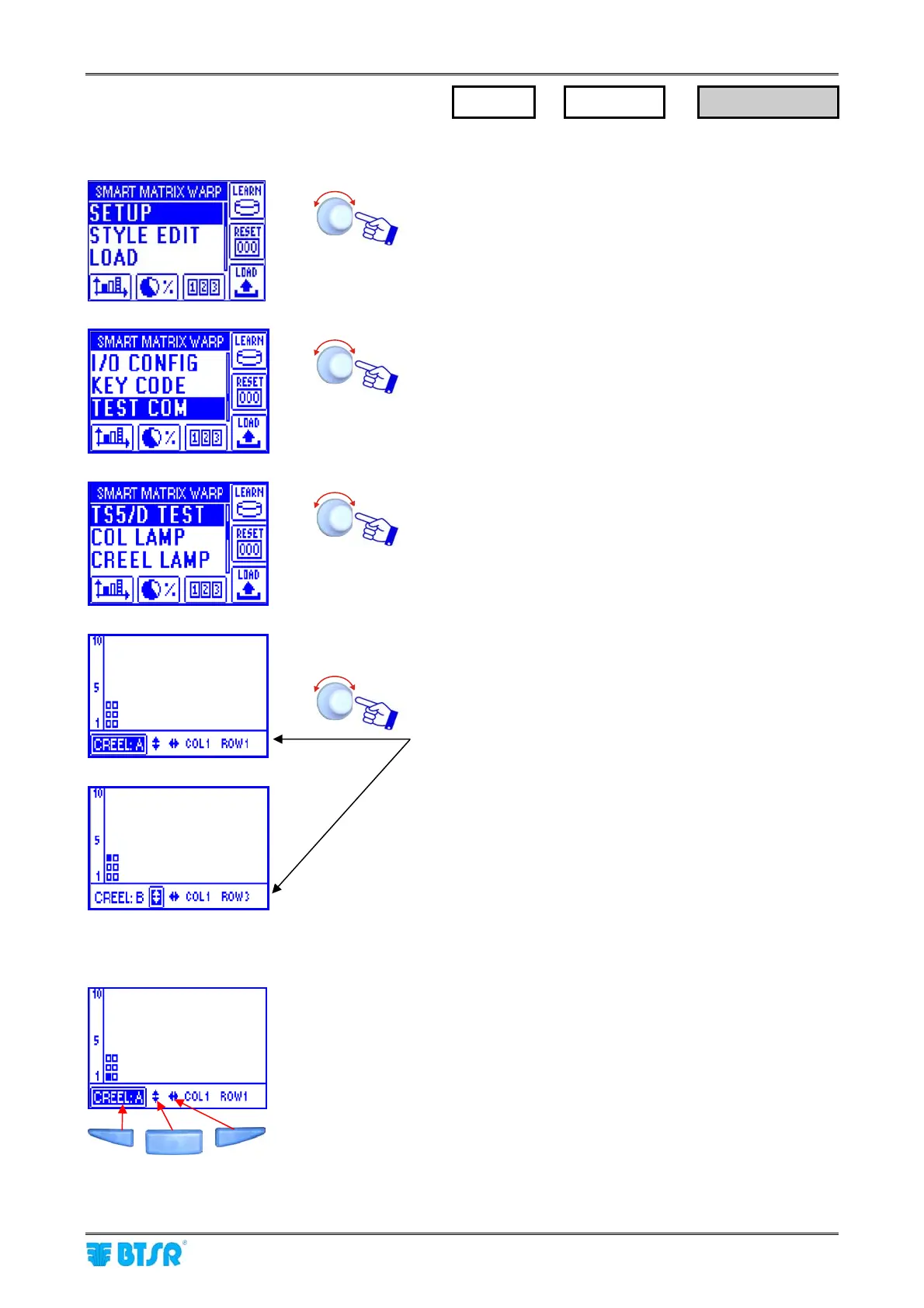 To select the sensor coordinates (Creel, Column and Row) you may use the “shortcut” buttons or