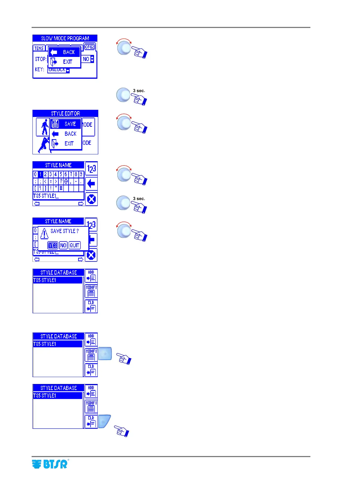 BACK to go back to previous screen without saving,