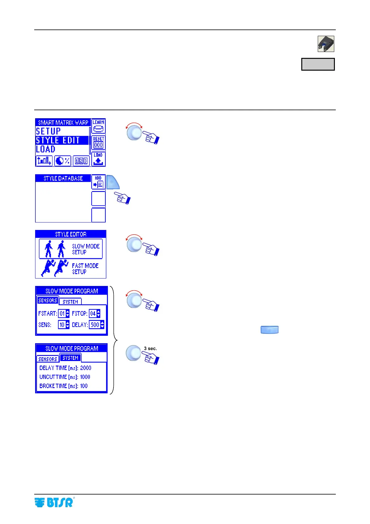 (*)If on the OPTIONS menu, SINGLE has been set for STYLE EDITOR MODE, then the SLOW MODE