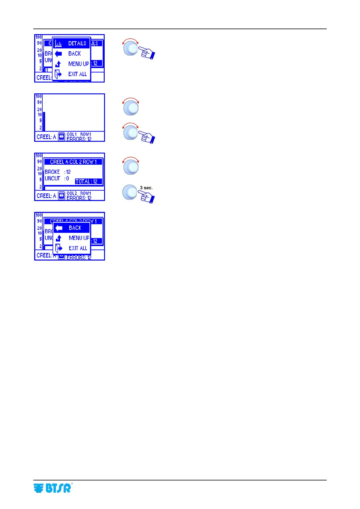 MENU UP to return to the error display screen at creel level