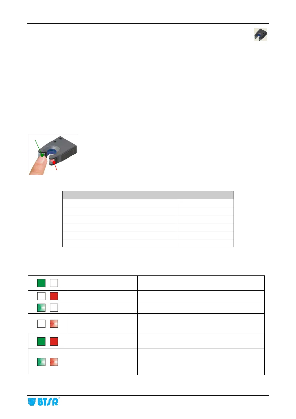 Interpretation of the signaling lights located on the sensors