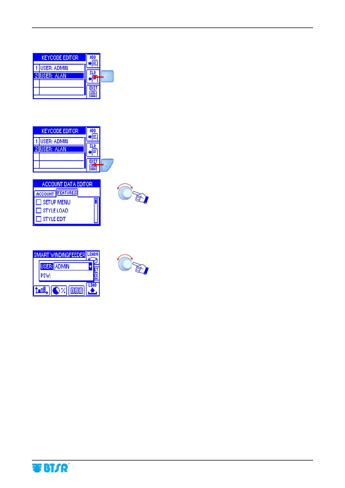 the selected user (SETUP, STYLE LOAD, STYLE EDIT,