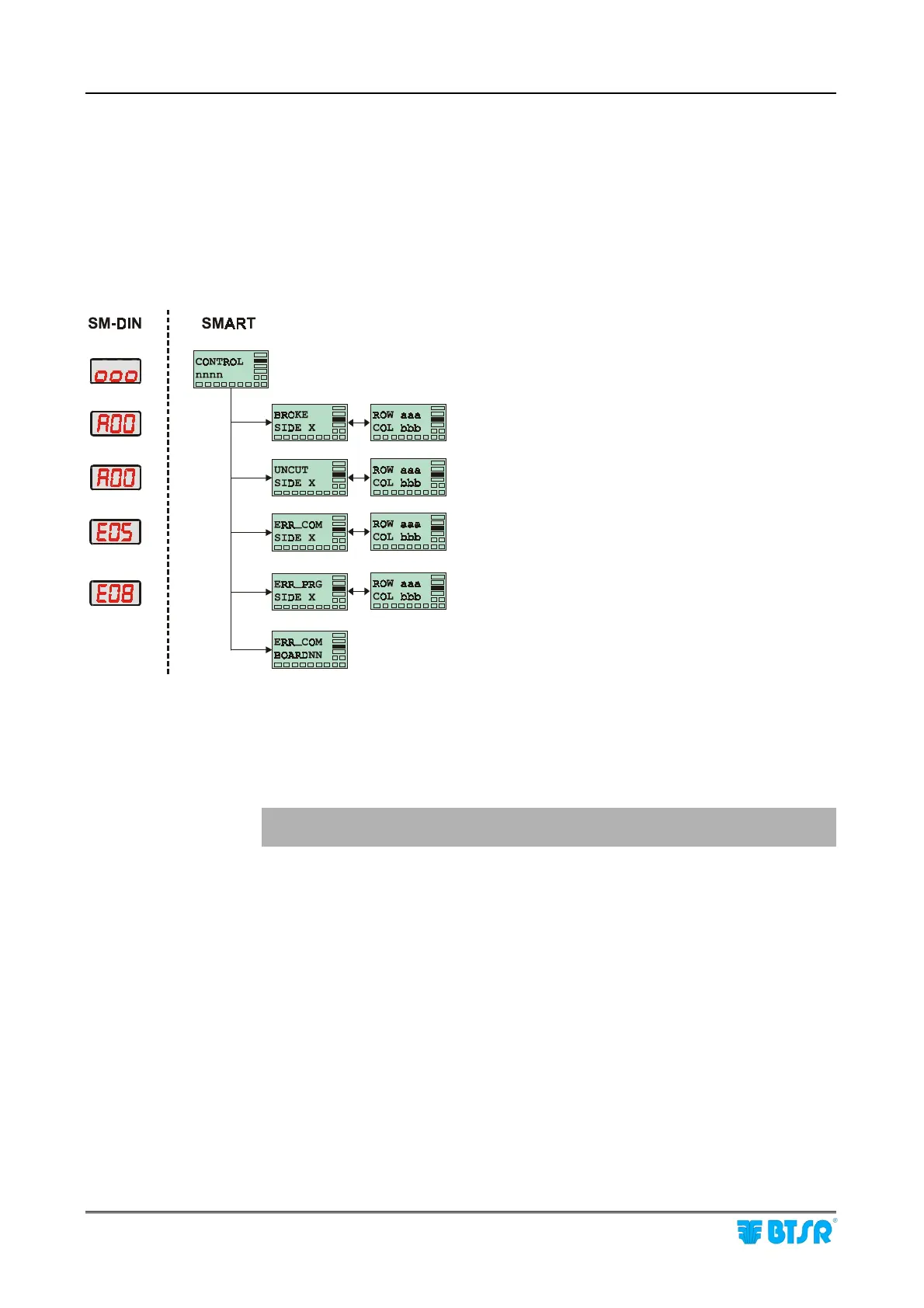 the display of SM-DIN modules may show various failure signaling messages.