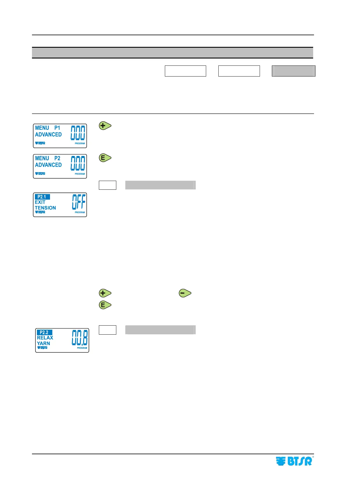 to continue with programming of P2 menu parameters.