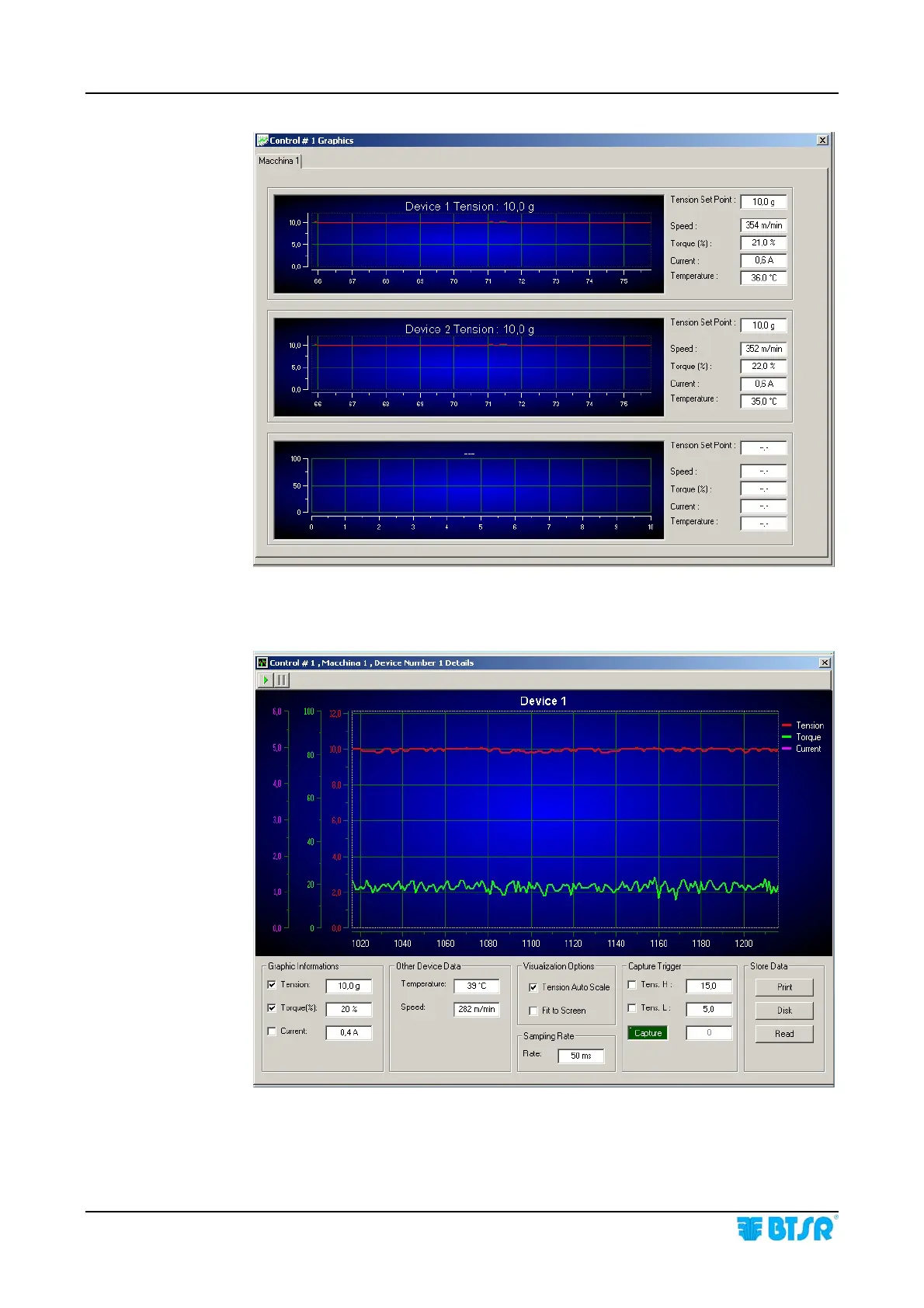 PC-Link KTF – Example of graphic showing the dynamic progress of yarn tension, motor