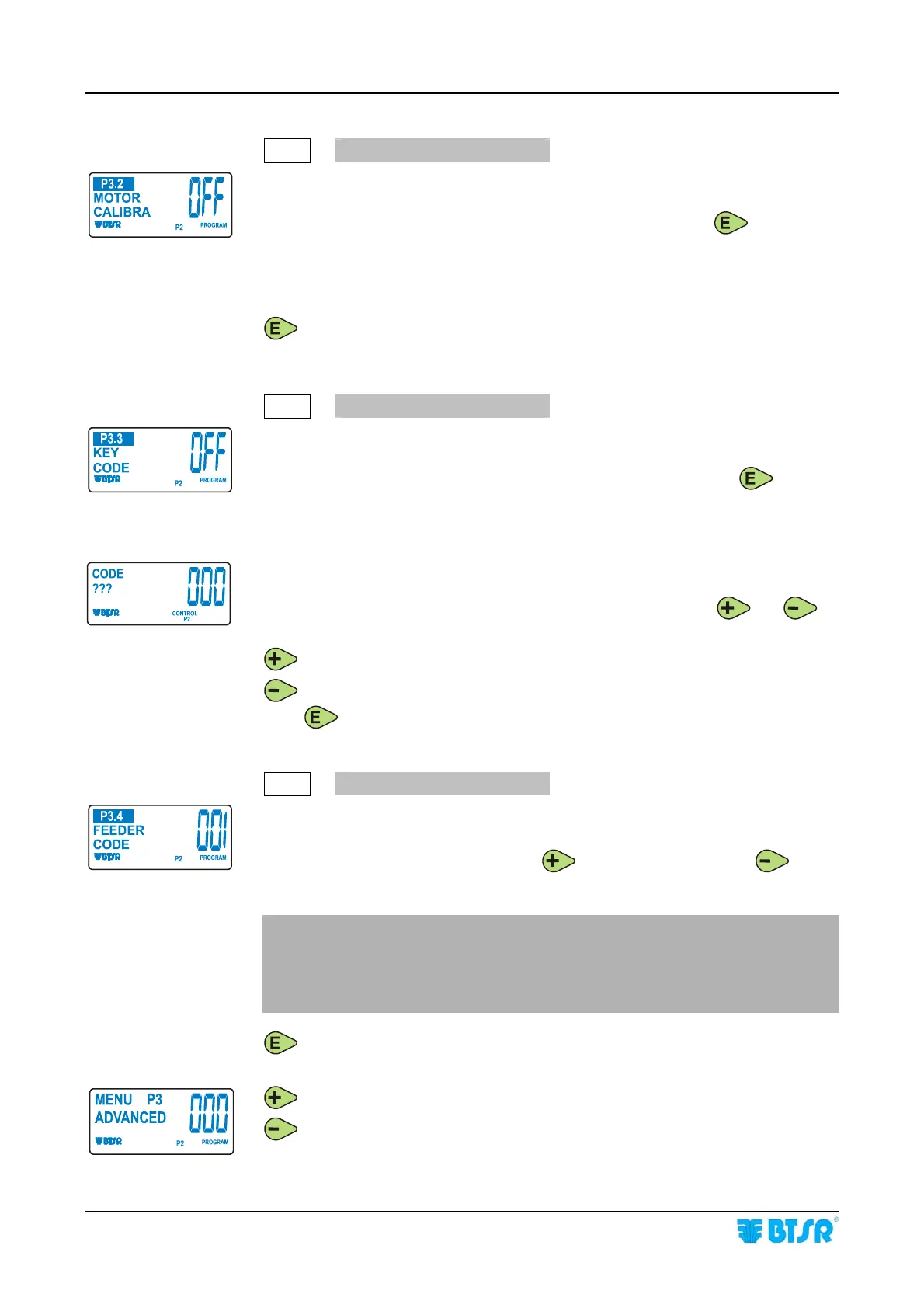 Automatic function reserved to BTSR service staff, in case of motor replacement.