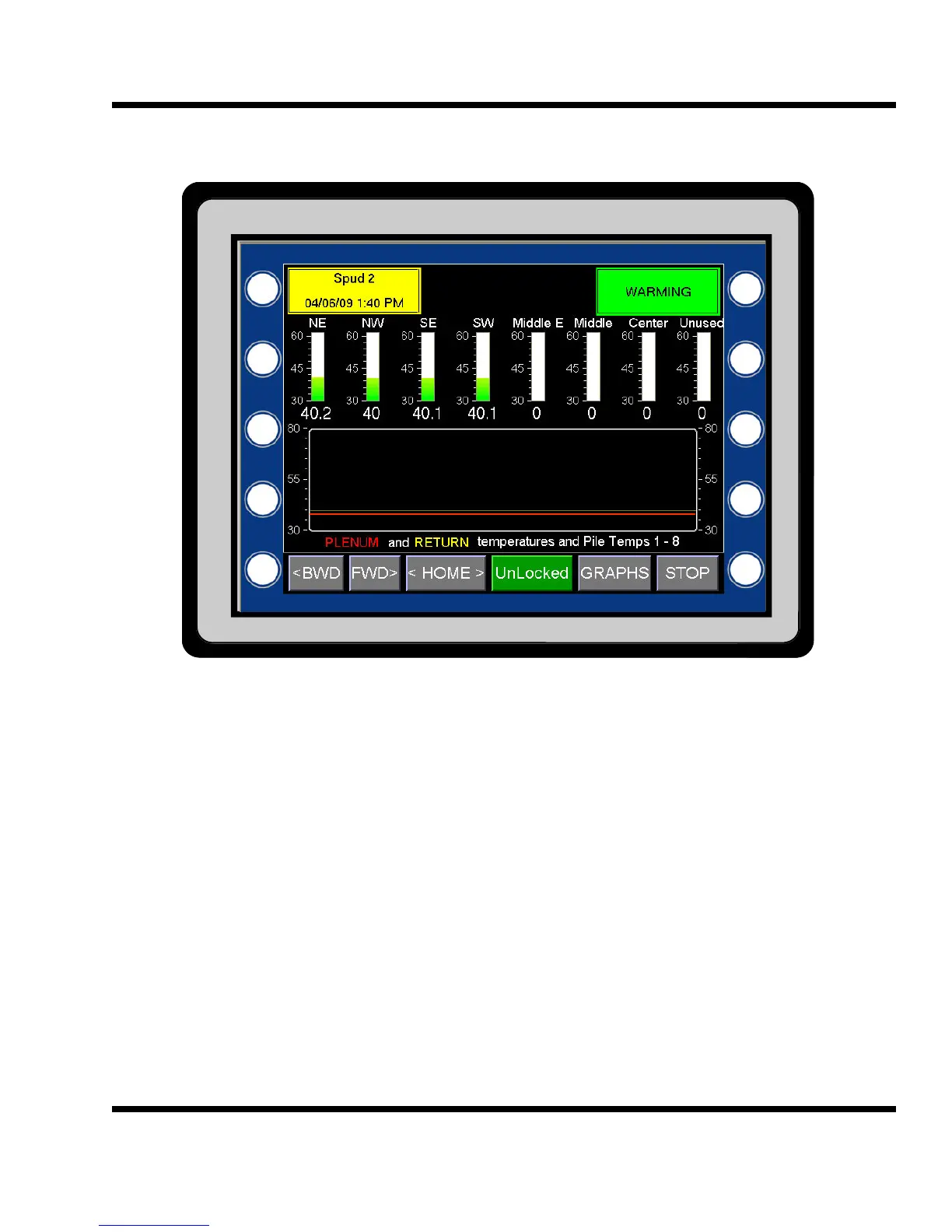 Each of the pile temperatures are displayed as a bar graph and in a window. The bar graph allows easy com-