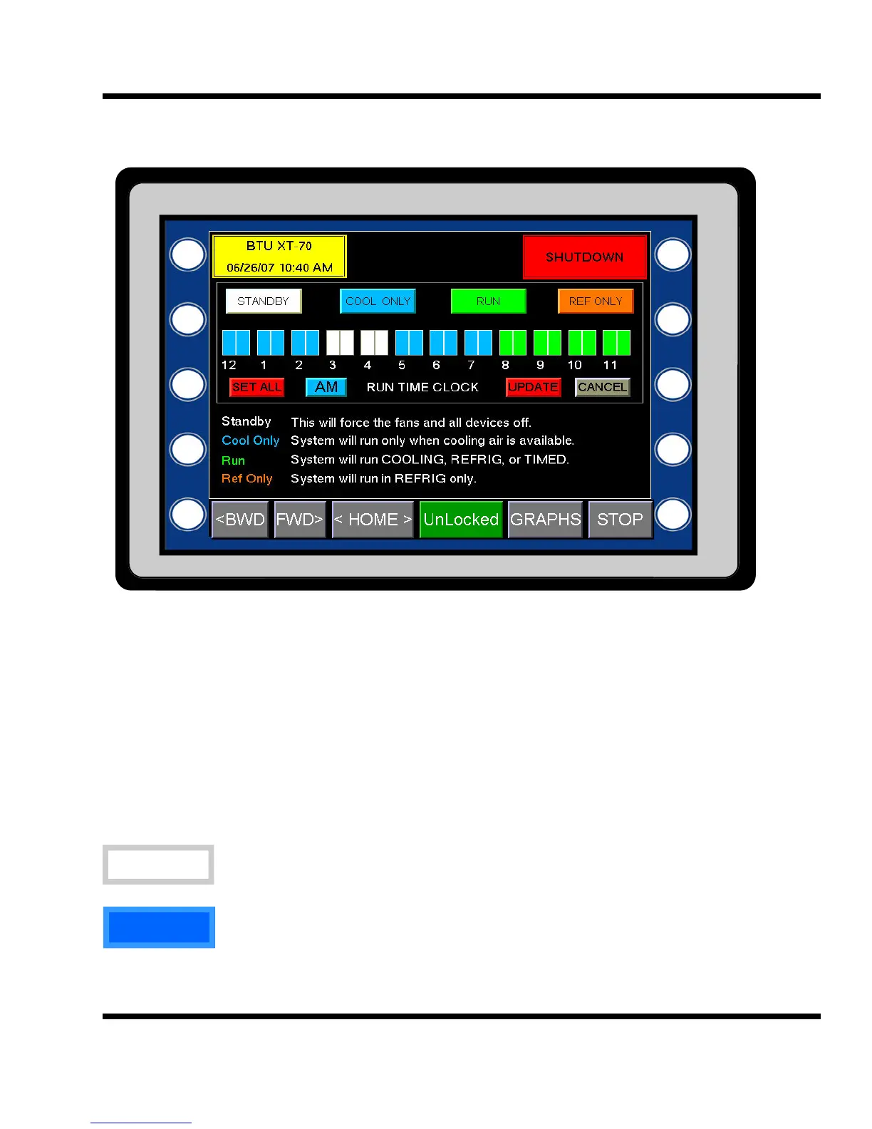 available. This mode will not run refrigeration or a timed run. If COOLING hours are pro-