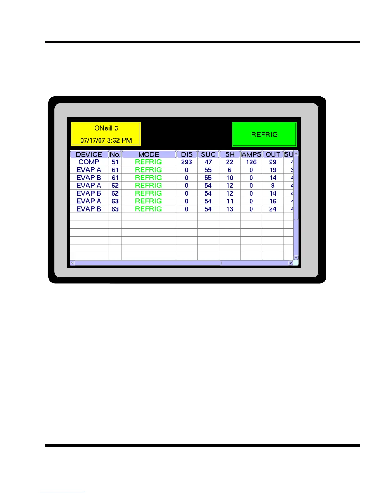 column, there will be either Comp (Compressor) or Evap (evaporator) showing. The main columns will