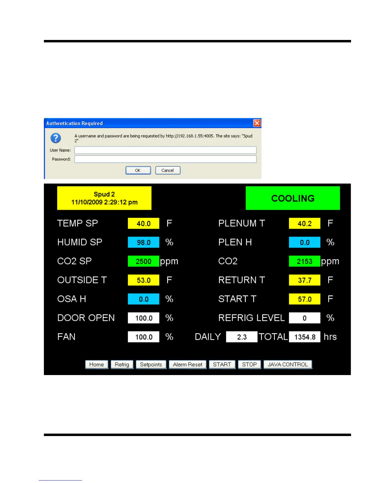then use the Refrig, Setpoints, Alarm Reset, START and STOP buttons.