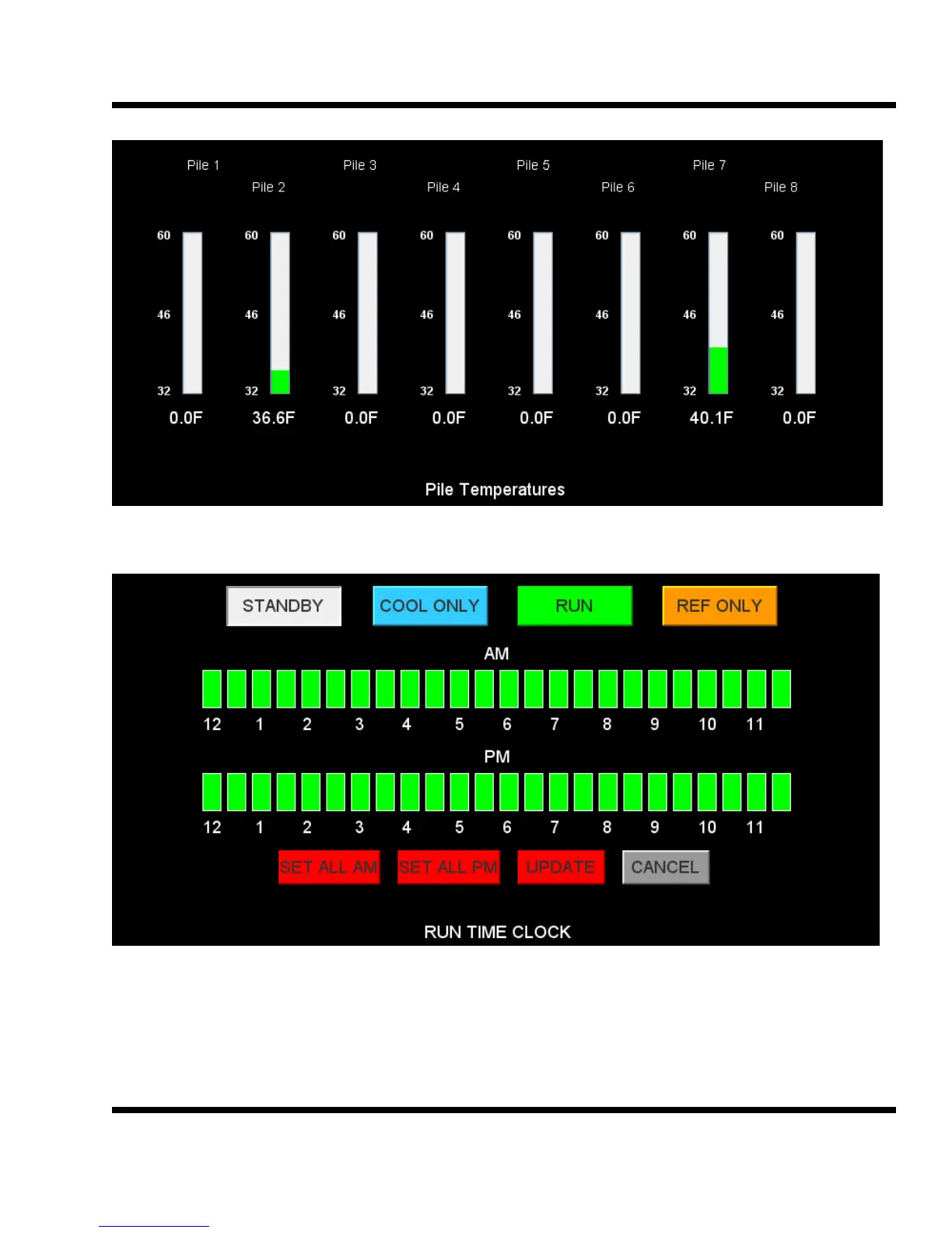 This screen shows the pile temps. The names of each of the pile sensors can be changed to reflect the loca-