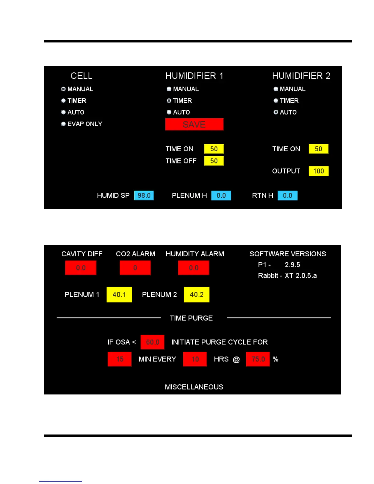 The Humidity screen allows all the humidity parameters to be set. See section 5.10 for more information.