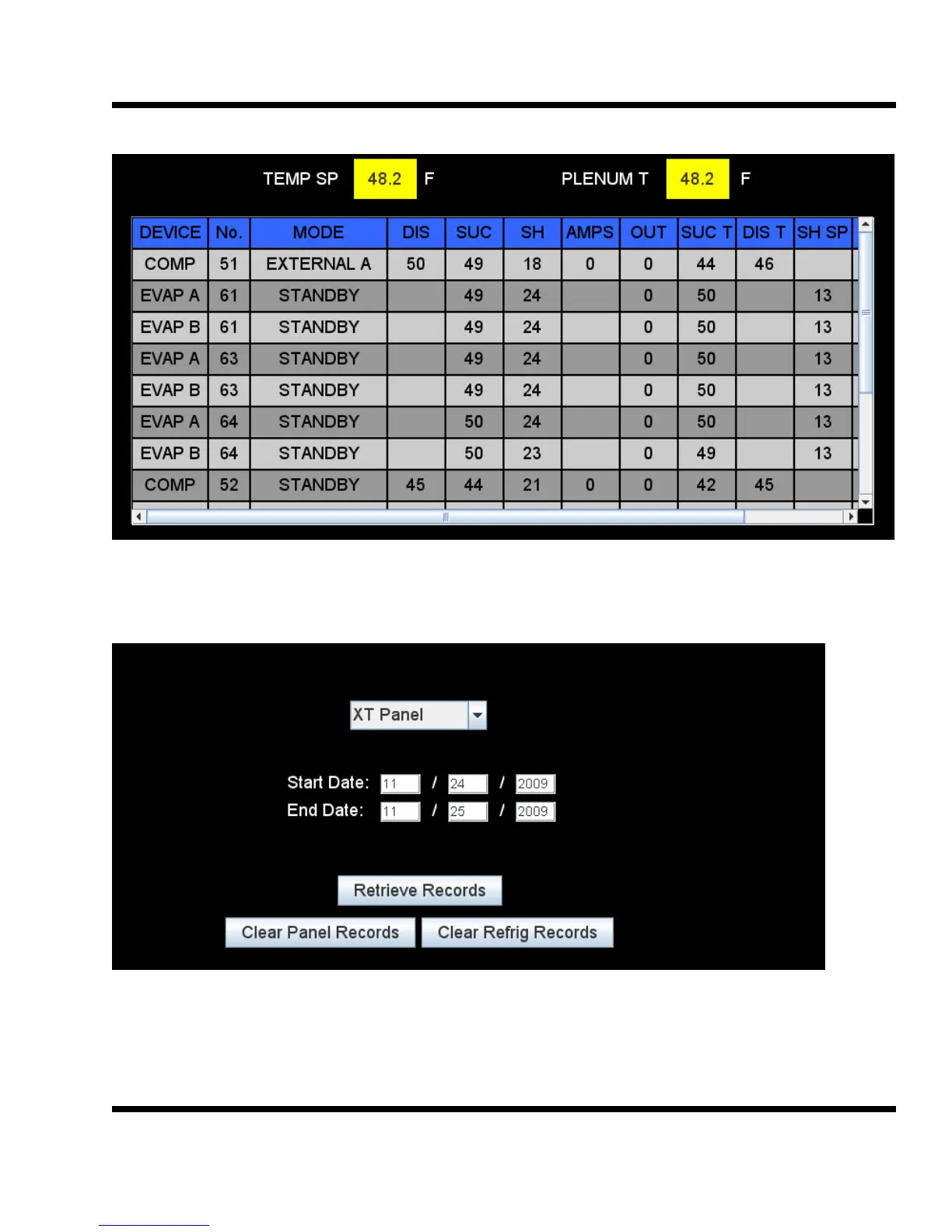 for the XT panel and one set for the refrigeration system. Use the drop down to select the type of records first.