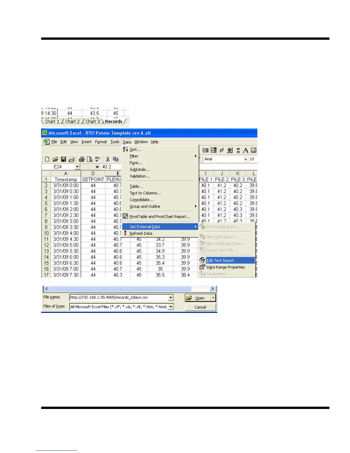 Click on Open and the file should load the new data for the last two or seven days.