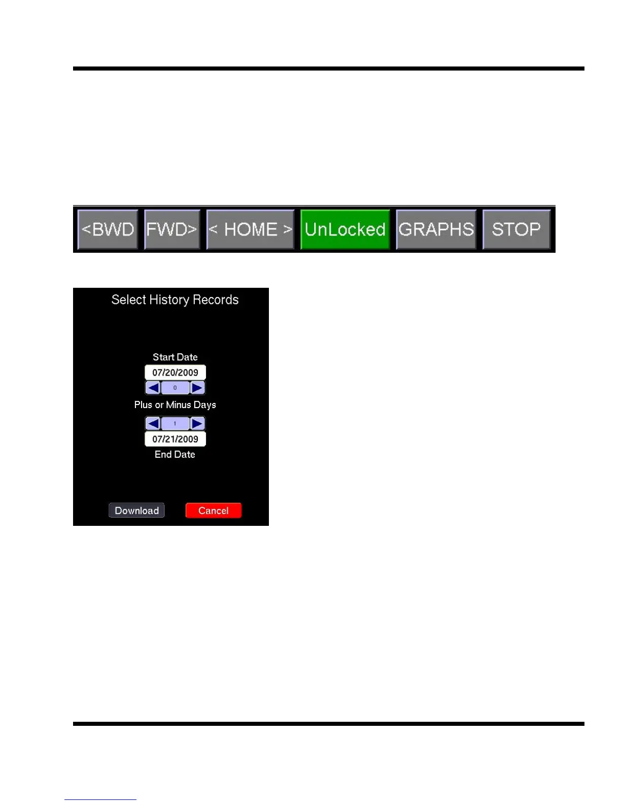 To access the records press the GRAPHS button on the bottom of the HMI.