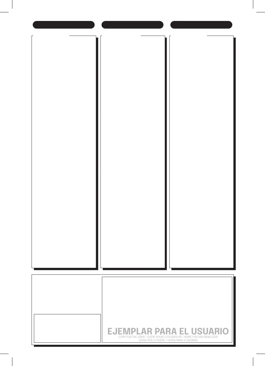 COPY FOR THE USER / COPIE POUR L’UTILISATEUR / KOPIE FÜR DEN BENUTZER