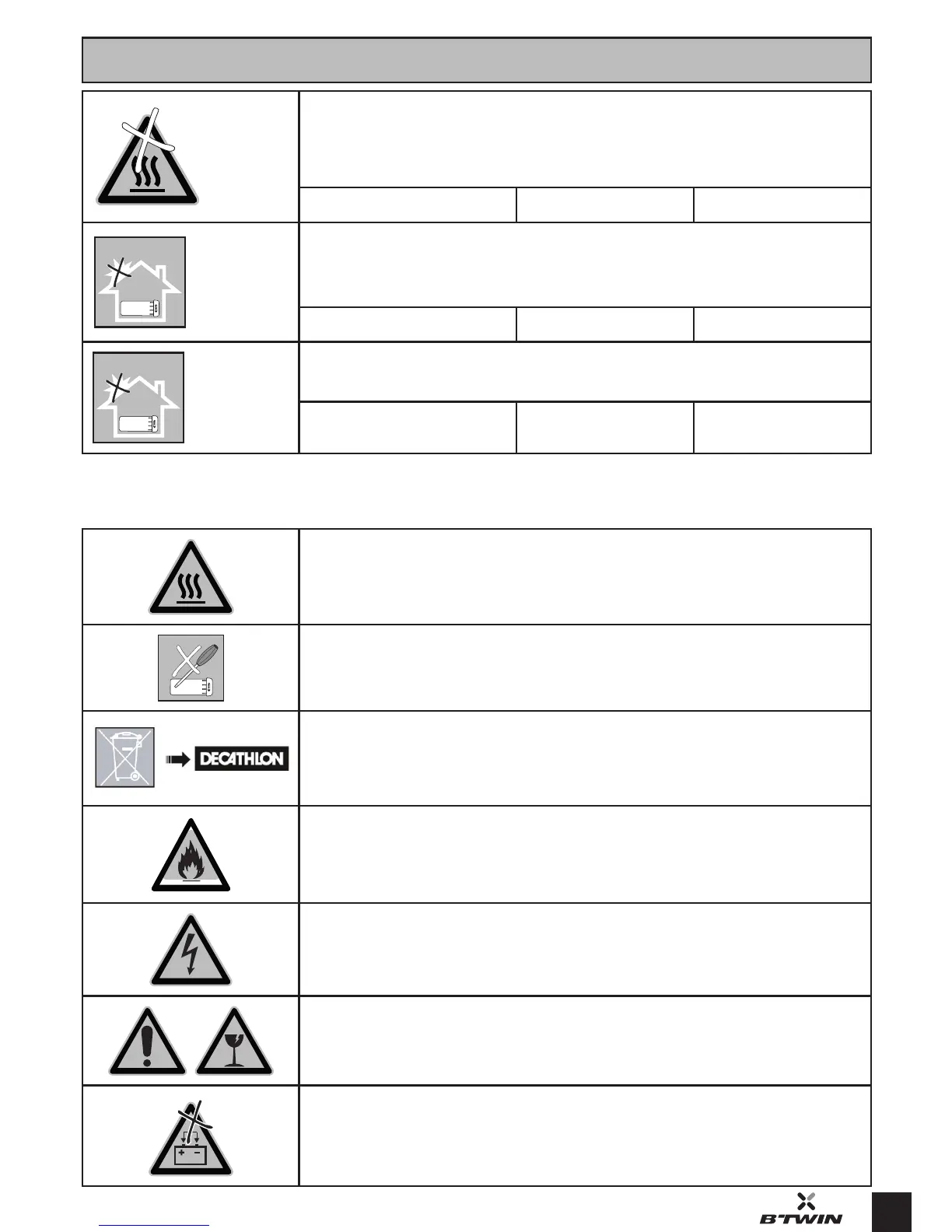 Return the used battery to your Decathlon ore for recy-