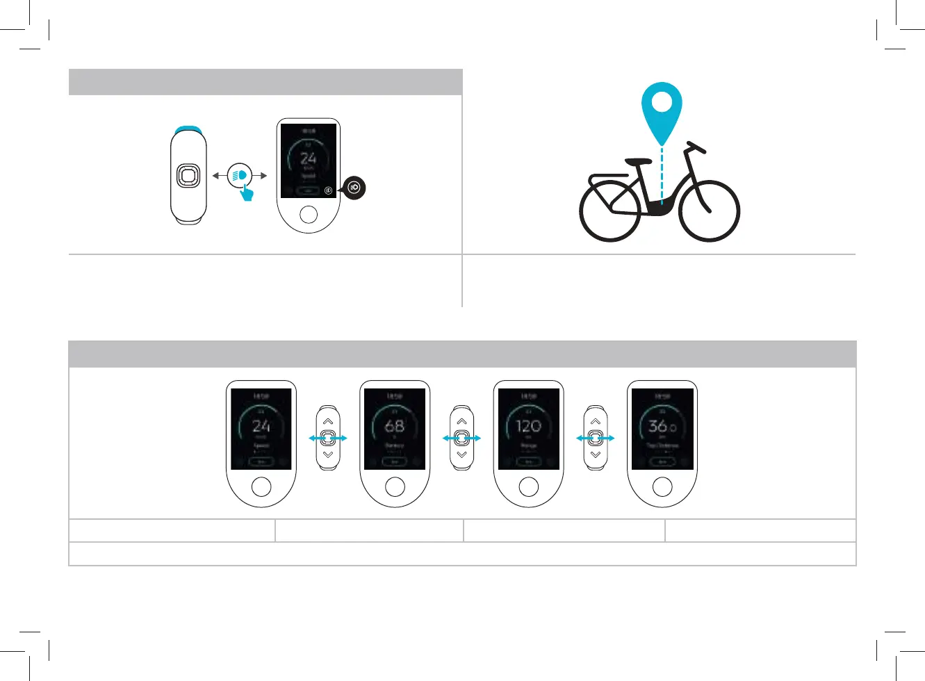 During your trip, you can navigate between the screens and consult the main datas : your speed, the battery capacity, the range remaining and the diance already covered.