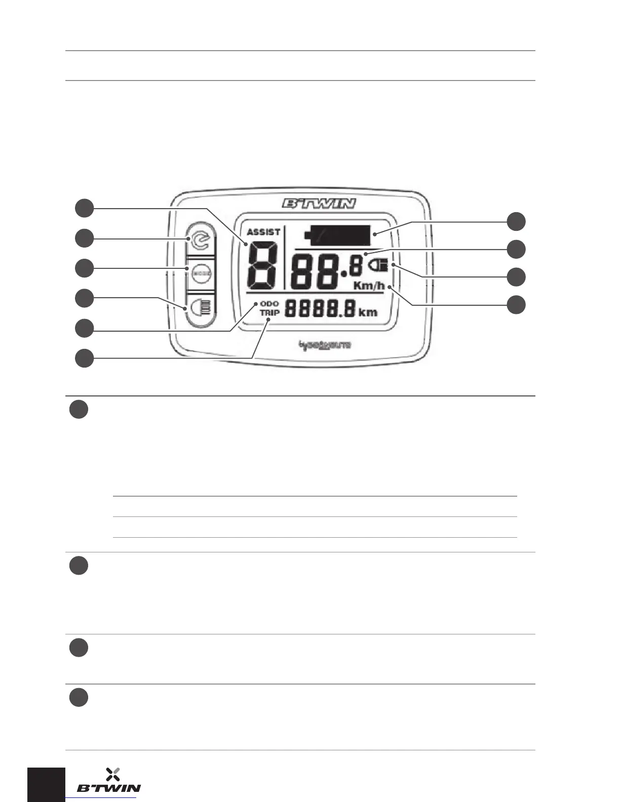 Switch the electrically-assisted bike on and off by pressing for 1.5