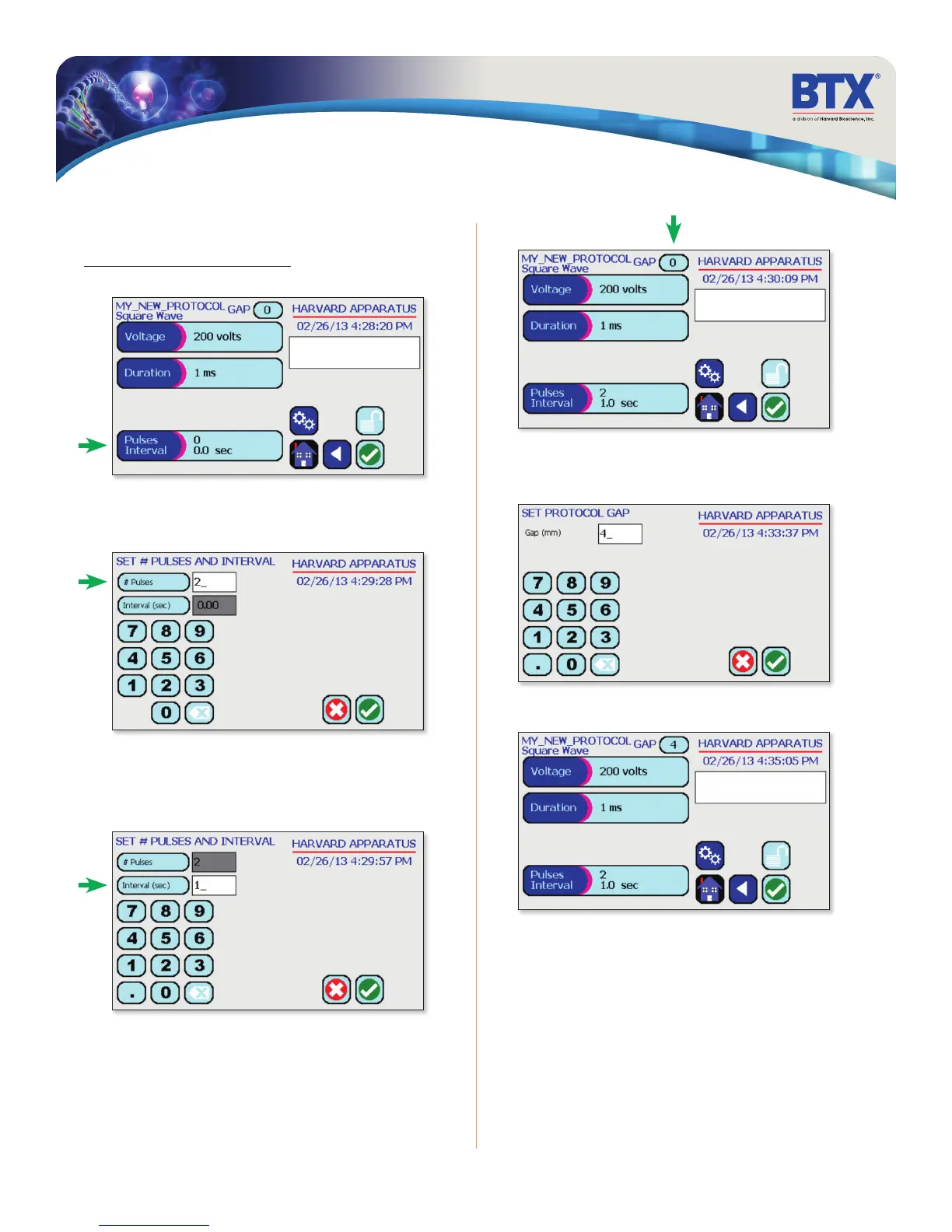 Use the numeric keypad to set the pulse interval.